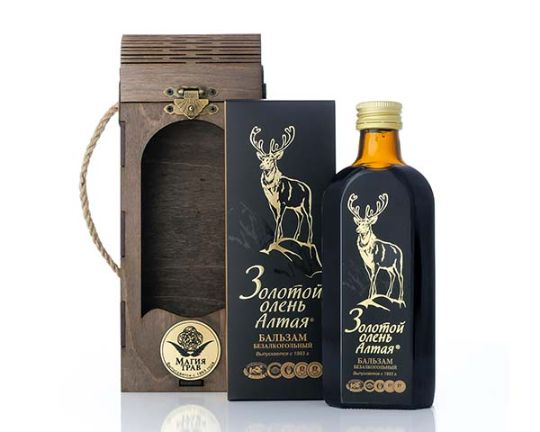 «Золотой олень Алтая» – элитный бальзам на основе пантов марала, золотого корня и кедрового ореха. Разработан по специальной экстракционной технологии.